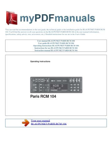 PARIS RCM 104; Blaupunkt PARIS RCM 104 Manuals Manuals and User Guides for Blaupunkt PARIS RCM 104. We have 1 Blaupunkt PARIS RCM 104 manual available for free PDF download: Operating Instructions Manual. Latest kontakt 5 library keygen 2016 download and full version 2016. Blaupunkt PARIS RCM 104 Operating Instructions Manual (20 pages) Blaupunkt Car Stereo System User Manual. This auction is for one Blaupunkt Paris RCM 104 Operating Instructions Manual. Booklet is in good condition. Languages: English, German, French, Italian,.